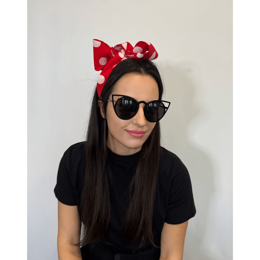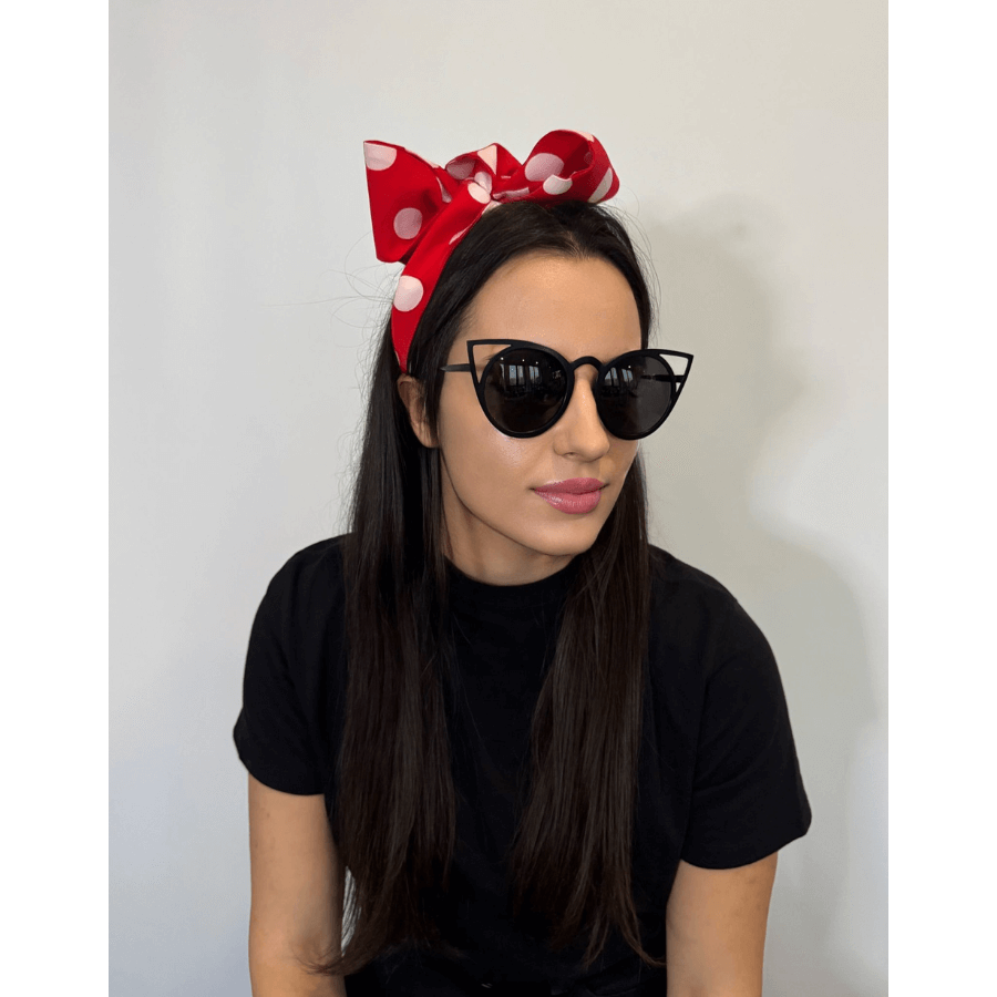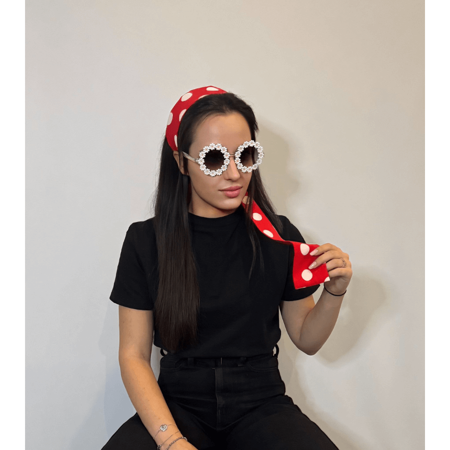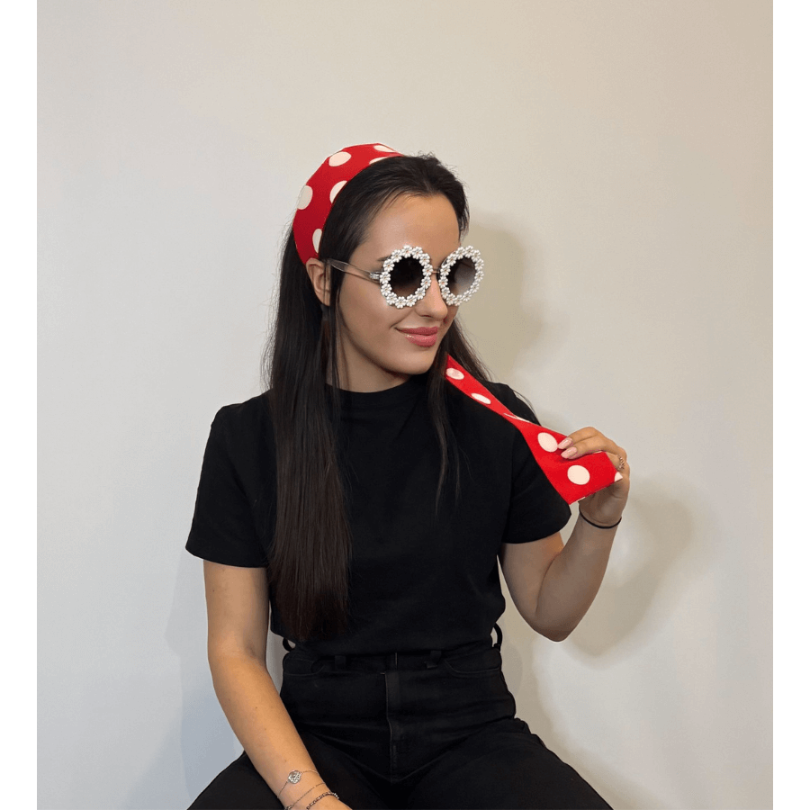 Czerwona opaska – szarfa w białe grochy – klasyk, który nigdy nie traci uroku.