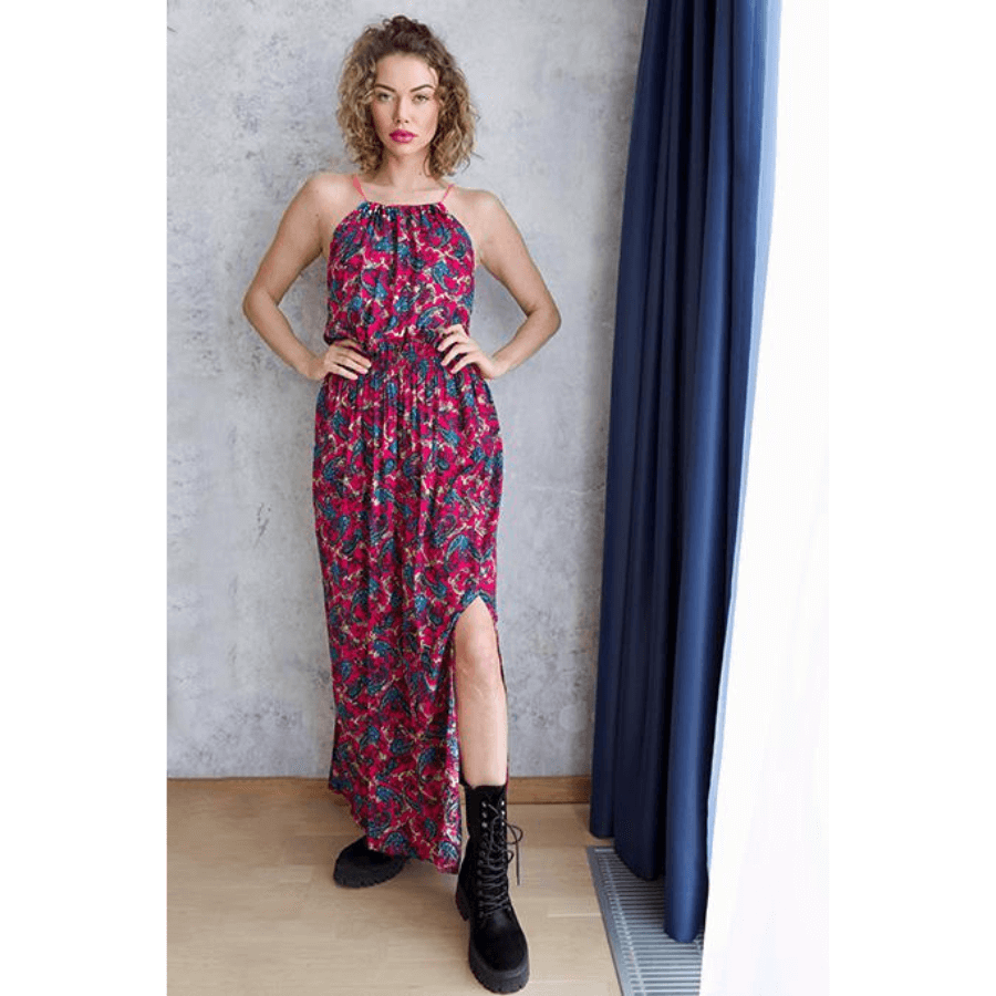 Sukienka o wyrazistym, kwiatowym wzorze to idealna propozycja na lato – zarówno na codzienne spacery, jak i letnie wyjazdy czy spotkania z przyjaciółmi. Lekki, przewiewny materiał zapewnia komfort noszenia nawet w upalne dni. Góra na cienkich ramiączkach pięknie eksponuje ramiona, a delikatnie zaznaczona talia podkreśla kobiecą sylwetkę. Rozcięcie na nodze dodaje całości lekkości i zmysłowości. Zestawiona z cięższymi butami, takimi jak trapery, tworzy modny kontrast i nowoczesny look.